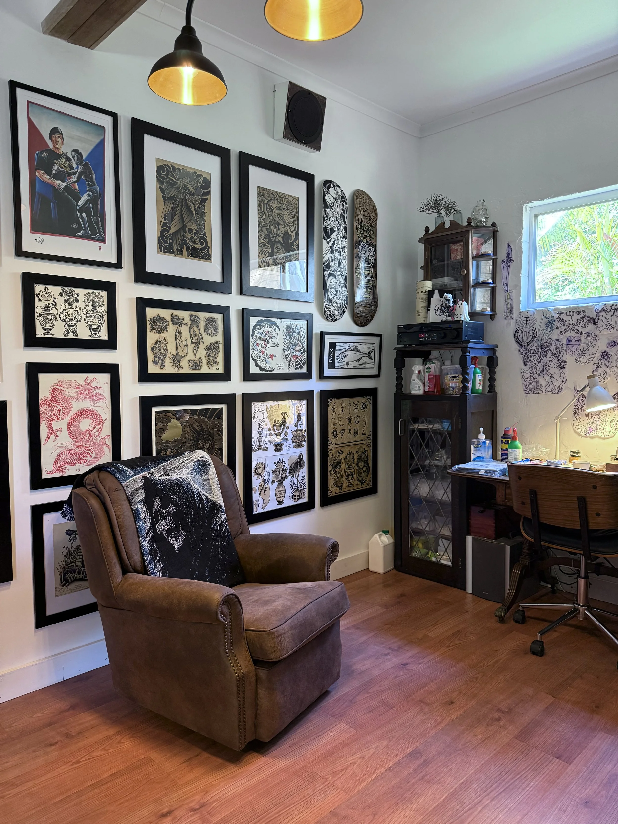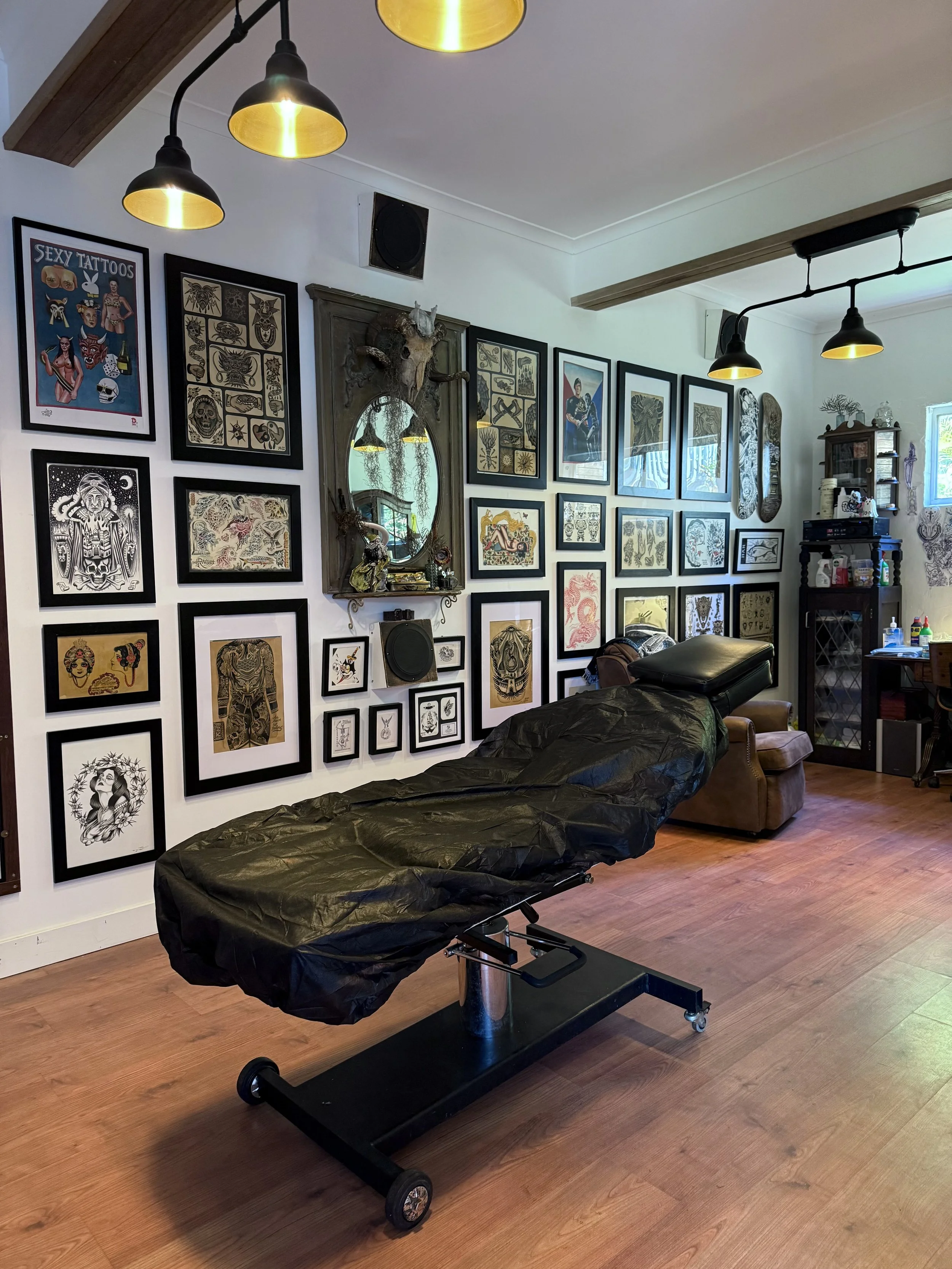 We’re so excited to share some photos of the new Louielou Tattoo aka The Doom Room! A serene space for Zach to be one-on-one with his clients, where he can find inspiration and creativity to create the most beautiful dark bold traditional and Japanese-style tattoos for his clients and for them to feel at home in a beautiful setting.