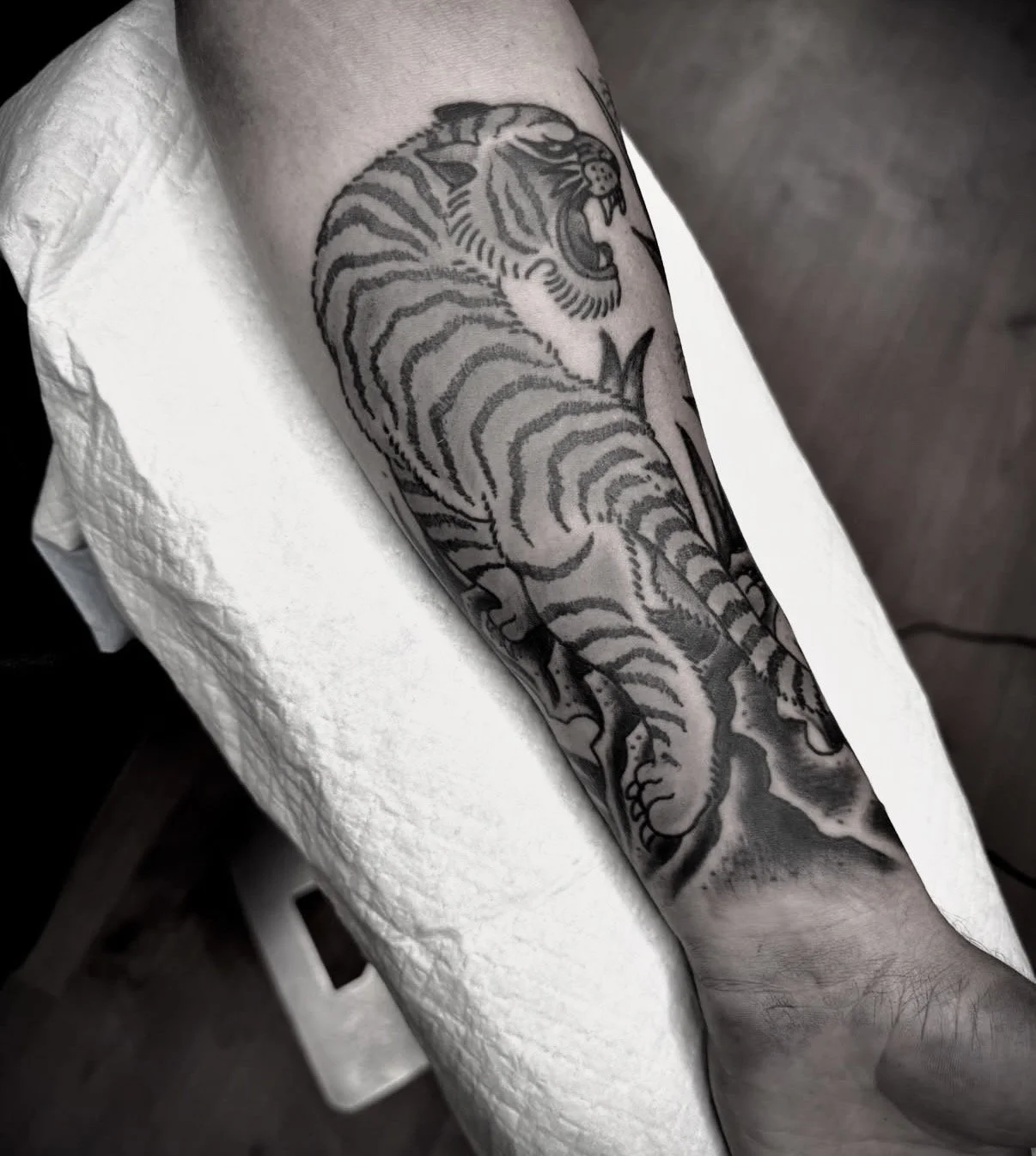 As a traditional tattoo artist in Australia, the focus is always on balance and flow — making sure the tiger moves with your body and keeps its strength no matter the placement.