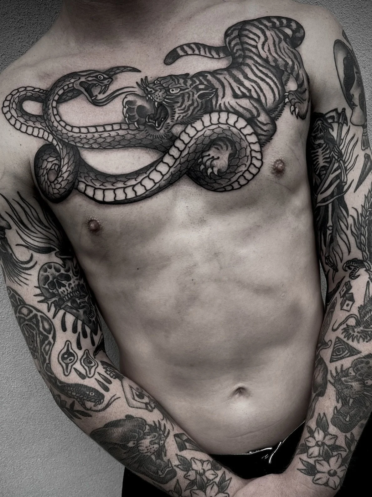 Stomach and chest tattoos are bold as hell—perfect for statement pieces that flow with your body.
